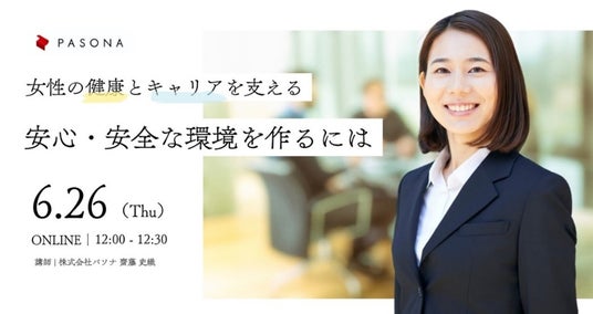 株式会社パソナは、女性活躍・ダイバーシティ推進、健康経営・産業保健のご担当者様へ向けたウェビナー「女性の 健康とキャリアを支える 安心・安全な相談環境を作るには」を、6月26日(木)に開催いたします。