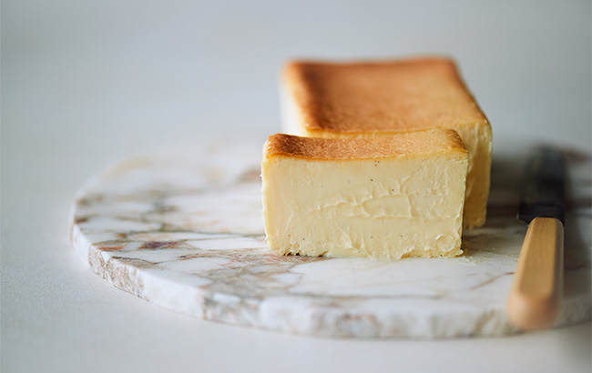2018 年に田村浩二氏によって立ち上げられ、通常はオンラインショップのみでチーズケーキをはじめとしたスイーツを販売している洋菓子店。ポップアップストアは、直接ご購入いただける貴重な機会です。レストランデザートのような濃厚かつ儚い口溶けと、バニラ・レモン・トンカ豆が生み出す甘く爽やかな香りが特長で、温度によって変化する味わいと香りを楽しめる新しいチーズケーキです。
