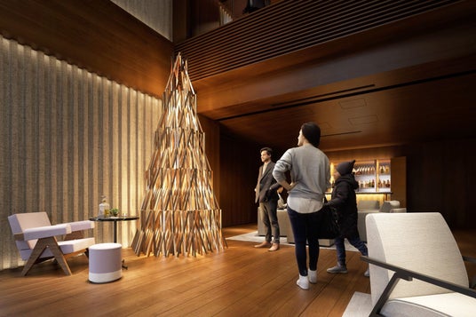 東京エディション虎ノ門と東京エディション銀座では、両ホテルのデザインを手がけた建築家・隈研吾氏によるサステナブルをテーマにしたクリスマスツリーをロビーに展示します。