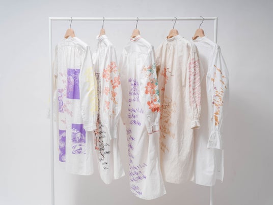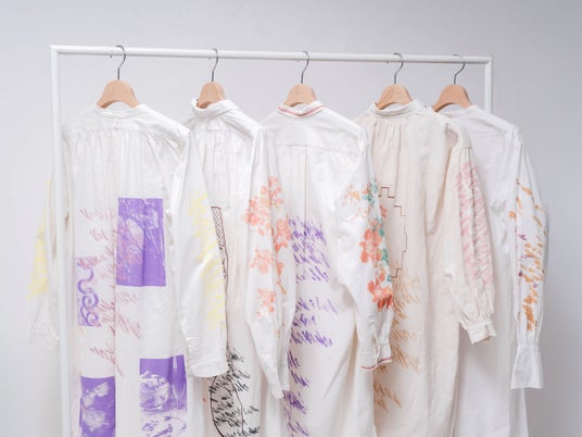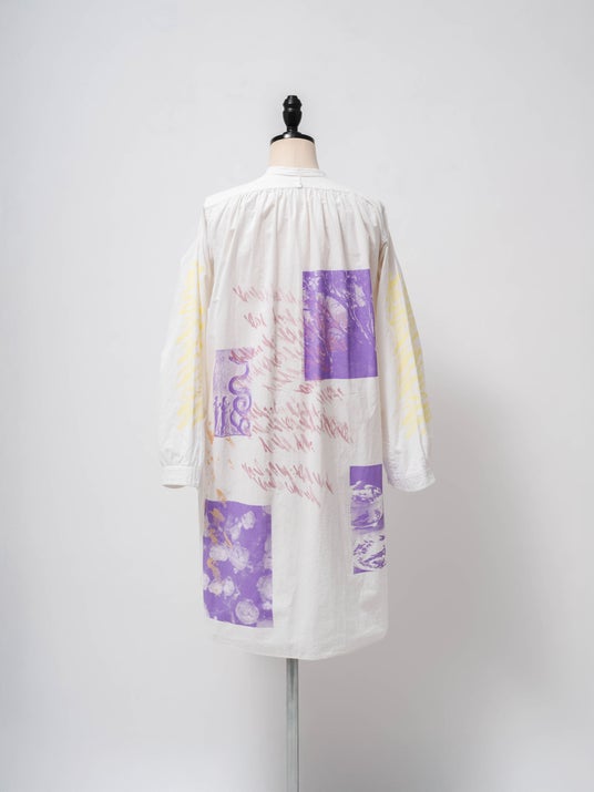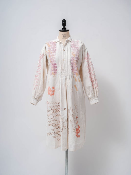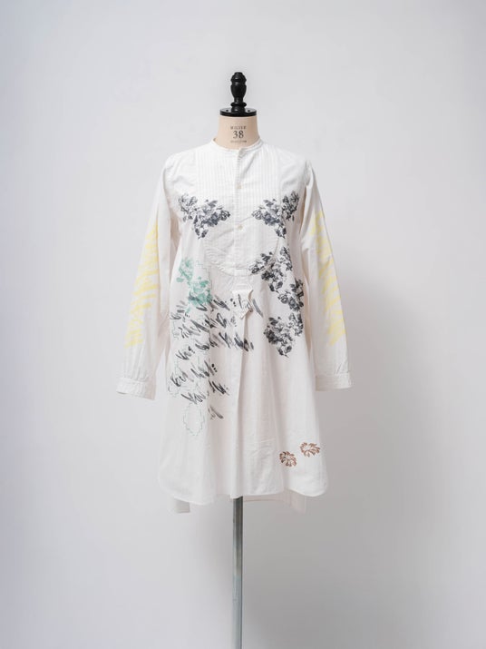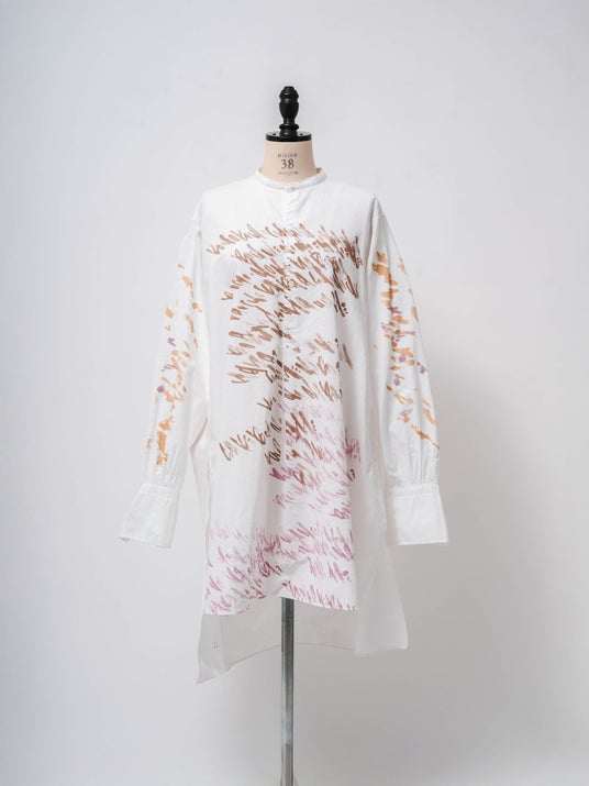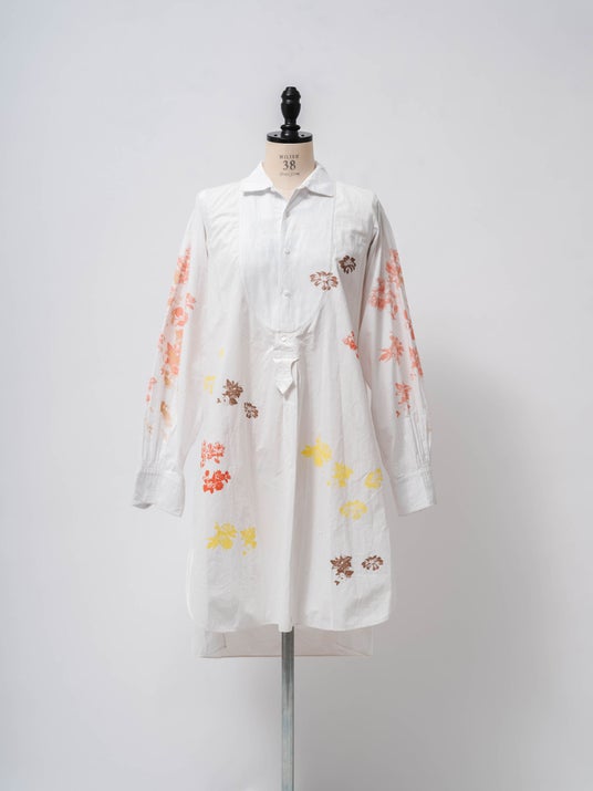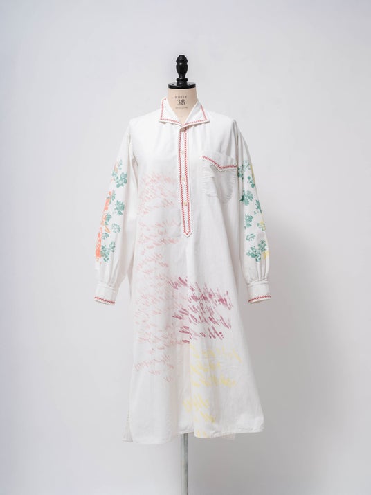THENIMEコンセプターの長尾がパリの蚤の市で見つけた、1930年代から1940年代のメンズのドレスシャツや、レディースのパジャマに、詩のカリグラフィーとパターンを重ね、それぞれが異なった配置でコラージュされています。