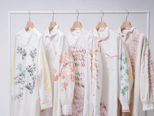 村上氏のアートが重ねられることで、クラッシックなシャツたちが、モダンで新たなテイストを纏った特別な姿に生まれ変わりました。