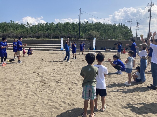 イベントでは選手から一人一人がアドバイスを受け、ビーチハンドボールに親しみました。またイベント当日は『秋の海ごみゼロウイーク』初日ということで福井からも中継をしました。