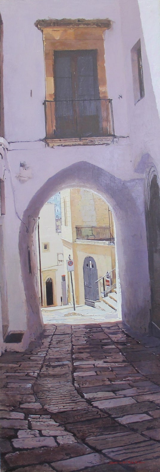 「オストゥーニの街角」(ウッドボード・油絵具、油彩、F6号) 330,000円