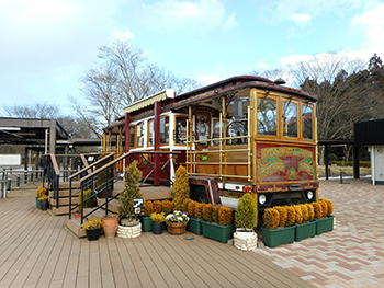 リゾート感あふれる那須高原のサービスエリア。シンボルは“乗る・遊ぶ・食べる”を体感できるトロリーバス。木立に囲まれた遊歩道もあり、那須連山を眺めながら散策すれば森林浴ができる。豊かな自然に癒やされながら、優雅なリゾート気分でリフレッシュタイムを。