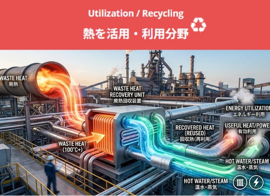 ●廃熱回収(熱交換器・回収ユニット) ●低温排熱利用 ●熱発電(ORC等) ●未利用熱活用 ●地中熱利用 ●熱カスケード・熱融通 など