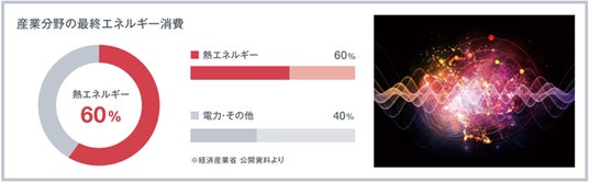 産業分野のエネルギー消費において、熱(蒸気・温水・高温プロセス)が占める割合は約60%と非常に大きく、カーボンニュートラル実現には避けて通れない領域です。一方で、電力分野に比べ対策が遅れているため、熱エネルギーを含めた総合的な技術革新が急務となっています。