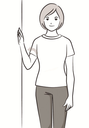 片手を壁に添えながら、姿勢を正して真っすぐ立つ。