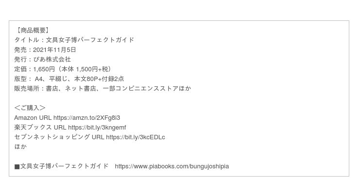 ■『文具女子博パーフェクトガイド』 https://www.piabooks.com/bungujoshipia