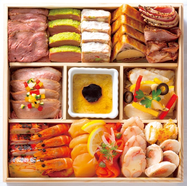 若い世代の方々にもお楽しみいただけるよう、意外性のあるお正月のご提案としてオードブル感覚で、シャンパンやワイン、バケットやチーズと合う“おせち”の概念を覆す絶品洋食おせち料理です。
