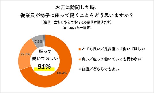 ・お店に訪問した時、従業員が椅子に座って働いていることに対して「いいと思う」が91%【図3】