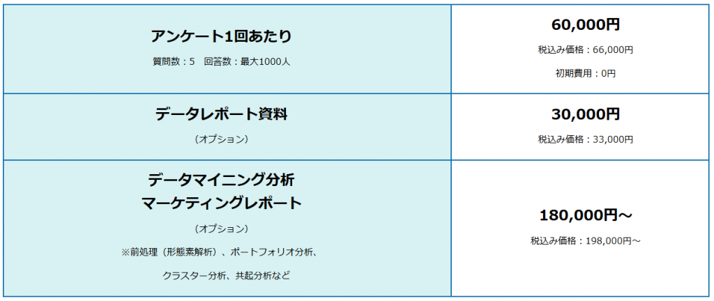1000人アンケート価格表