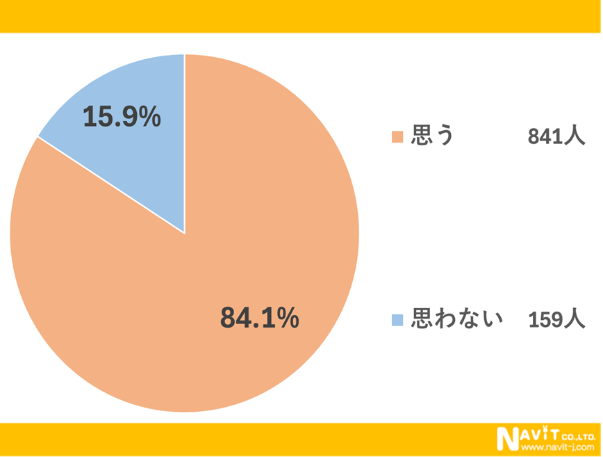 遠出をした際にホテルを積極的に利用したいと思いますか?というアンケートでは、「思う」を選んだ人が84.1%と、大多数を占めました。遠出の際の宿泊先として、ホテルが絶大な地位を確立していることがわかります。