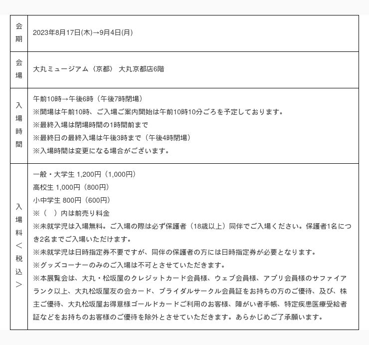 ※物販会場へのご入場は、展覧会会場へご入場・ご観覧後の入場とさせていただきます。
