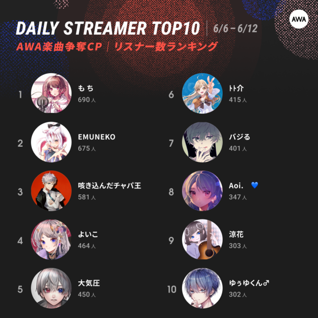 AWA株式会社(本社:東京都港区、代表取締役CEO:冨樫晃己)が運営する、サブスクリプション型(定額制)音楽ストリーミングサービス「AWA(アワ)」は、2022年5月27日(金)にサービス開始より7周年を迎え、LOUNGE(ラウンジ)の「音声ライブ配信」「ギフティング(以下、フラワーチャット)による収益化」機能を全ユーザーに解放いたしました。現在、AWAでは機能の一般解放を記念して、「オリジナル楽曲提供キャンペーン」と「屋外大型ビジョン放映CM出演キャンペーン」の2つのキャンペーンを開催中。