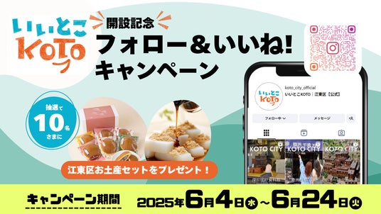 東京都江東区は、区の多彩な魅力をより多くの方に届けるため、本日、令和7年度6月4日より、江東区公式Instagramアカウント「いいとこKOTO(@koto_city_official)」を開設いたしました。株式会社ポニーキャニオンは、本公式インスタグラムの運用支援を行っています。