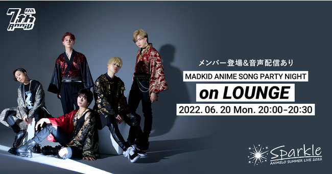 今回のLOUNGEは、2022年8月26日(金)から28日(日)の3日間開催される世界最大のアニソンイベント『Animelo Summer Live 2022 -Sparkle-』への出演を記念して開催されるもので、『MADKID ANIME SONG PARTY NIGHT』と題して、今年の出演者の楽曲や歴代出演者の人気曲、アニソンレジェンド楽曲など、さまざまなアニソンをオンエアしながら、アニサマをより楽しむための予習イベントとなります。本イベントは、8月まで毎月開催予定となり、リアルタイムにメンバーが音声とチャットで参加します。LOUNGEは、どなたでも参加することができ、AWAアプリを事前にダウンロードしていれば、リクエストやアーティストとの交流など、よりお楽しみいただけます。ぜひ、MADKIDメンバー降臨のラジオ配信ラウンジをお楽しみください。