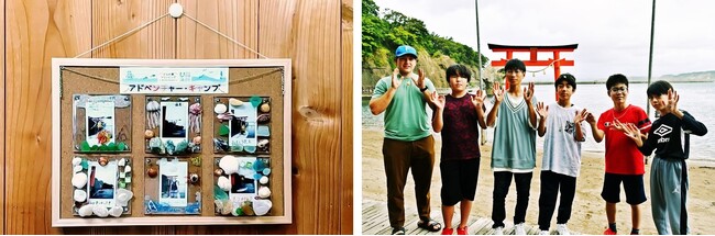 ~3日間の思い出を島に残すための「思い出パネル」を、海洋漂着物でデコレーションしたフレームで作成し、写真をコメント入れ。