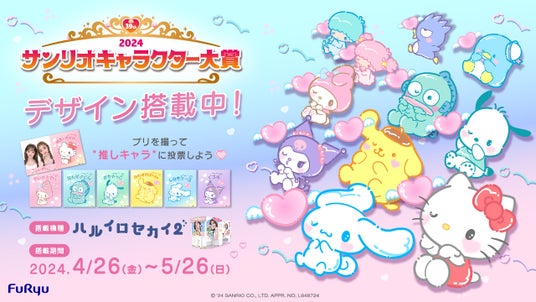 フリュー株式会社(本社:東京都渋谷区、代表取締役社長:三嶋隆、以下 フリュー)は、プリントシール(以下 プリ)機『ハルイロセカイ2』にて、今年で39回目を迎えた株式会社サンリオのキャラクターの人気投票イベント「2024年サンリオキャラクター大賞」(主催:株式会社サンリオ)とのコラボレーション(以下、コラボ)を、4月26日(金)から5月26日(日)までの期間限定で実施いたします。