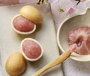かわいい玉子型の最中種の中に餡を詰めて手作りで楽しめるお菓子。可憐に舞うさくらの花びらのような淡いピンク色のさくら餡。くちどけなめらかな食感とさくらの豊かな香りをそのままに丁寧に炊き上げました。