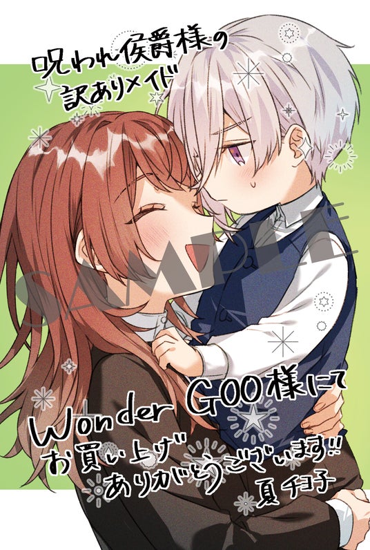 小鳩子鈴先生作品『レンズ越し、たった一度の恋をする~失踪令嬢とカメラマン~』『呪われ侯爵様の訳ありメイド』の連続刊行記念として、オリジナルクリアファイルの応募者全員プレゼントキャンペーンを開催いたします。クリアファイルは、『呪われ侯爵様の訳ありメイド1』の表紙イラストと描き下ろしイラストを使用した絵柄になる予定です。