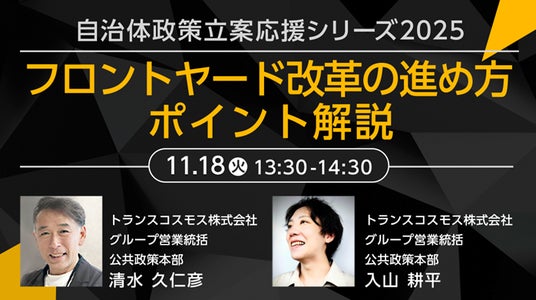 トランスコスモスは、オンラインセミナー自治体政策立案応援シリーズ2025フロントヤード改革の進め方 ポイント解説を11月18日(火)に開催します。