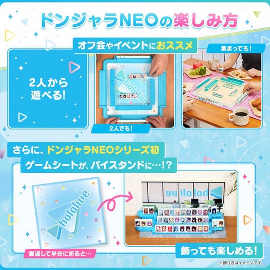 使用シーンに合わせて、2人から使用でき、離れて遊ぶことも可能です。全34名のホロライブメンバーを収録!