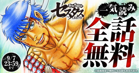 「ヤングアニマルZERO」で人気連載中の『拳奴死闘伝セスタス』(技来静也/著 白泉社)が、ヤングアニマルWebで48時間限定で一気読みできる全話無料キャンペーン実施!
