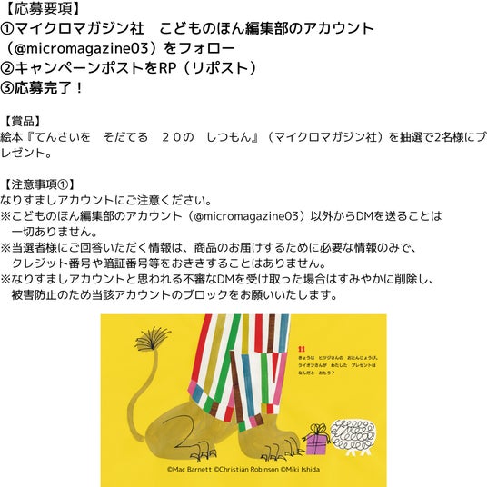 マイクロマガジン社(東京都中央区)は、こどものほん編集部公式SNSアカウントにてプレゼントキャンペーンを開催いたします。