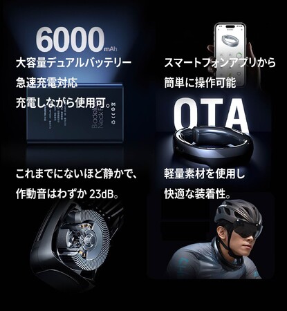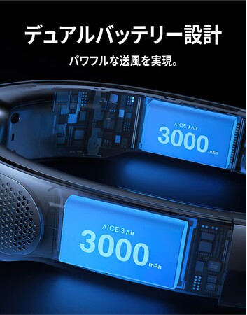 「NeckCool Air」は合計6000mAhの大容量バッテリーを搭載。