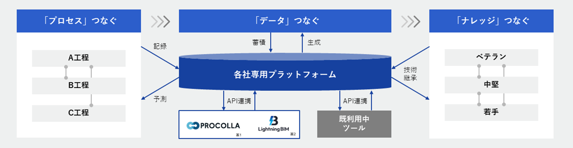 また、収集したデータは各社専用のプラットフォームを整備し、分断された業務プロセスを一つのワークフローとして再定義し、プロセス変革を実現します。