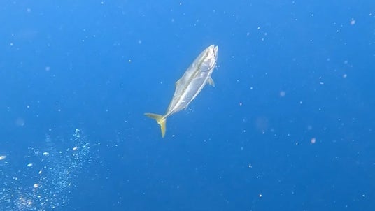 すると、2人同時にヒット!上がってきたのは、ヒラマサ。佐野は60センチ、末永は55センチをキャッチした。