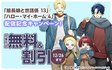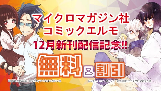 マイクロマガジン社(東京都中央区)は、本日12月11日にコミックELMO『組長娘と世話係13』と『ハロー・マイ・ホーム 4』の発売を記念して、各電子書籍配信サイトで期間限定で無料&割引フェアを開催いたします。