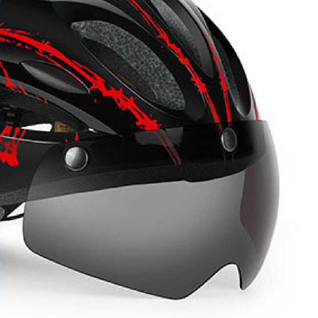 また、突然の雨や強風時でも、マグネット式の取り外し可能なシールドが目をしっかり守ります。