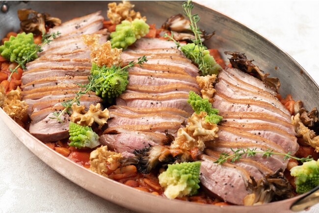 ・合鴨肉のロースト 蜂蜜とコリアンダーの風味 カスレと共に(総料理長 石田敏晴)