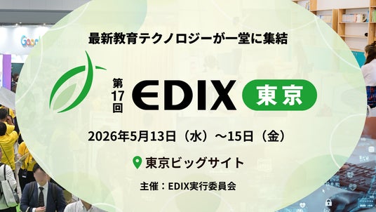 EDIX実行委員会(企画運営:RX Japan合同会社(本社:東京都中央区、代表執行役員社長:田中岳志))は、2026年5月13日(水)から15日(金)の3日間、東京ビッグサイトにて、日本最大級の教育分野の総合展「第17回 EDIX(教育総合展)東京」を開催いたします。