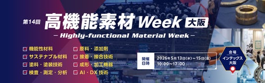 RX Japan合同会社(本社:東京都中央区、代表執行役員社長:田中岳志)は、2026年5月13日(水) - 15日(金)の期間、第14回 高機能素材 Week[大阪]をインテックス大阪にて開催します。