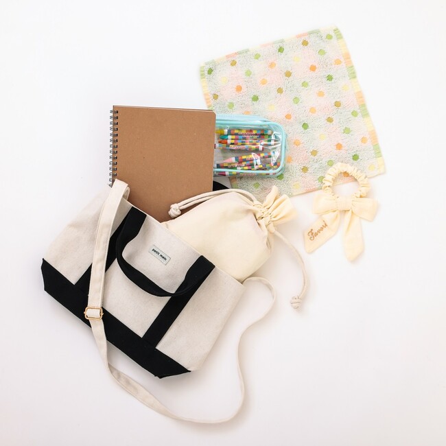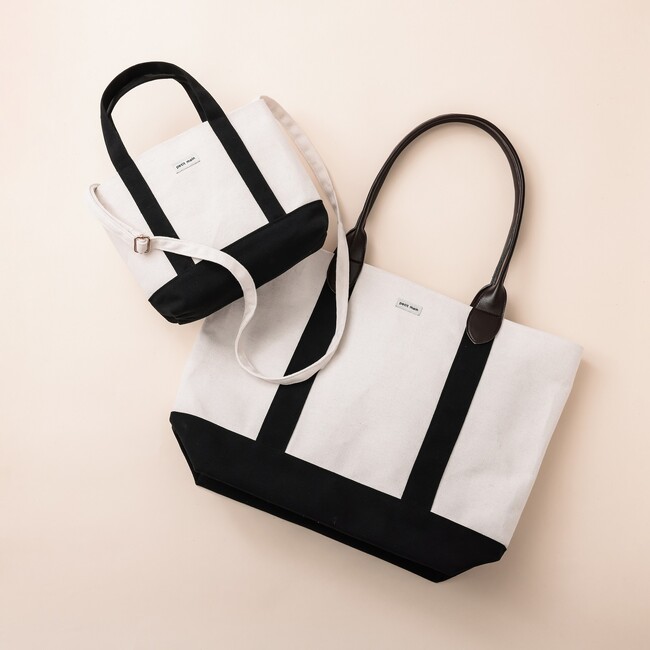 本誌限定アイテムは、マザーズトートバッグとミニバッグの豪華2種セット。荷物が多いママも安心の大容量なマザーズトートバッグは、2つの内ポケットが付いて仕分けがしやすく、重い荷物も持ちやすい丈夫な持ち手がポイントです。ミニバッグは女の子も男の子も使いやすいシンプルなデザイン。親子リンクコーデに最適なアイテムとなっています。