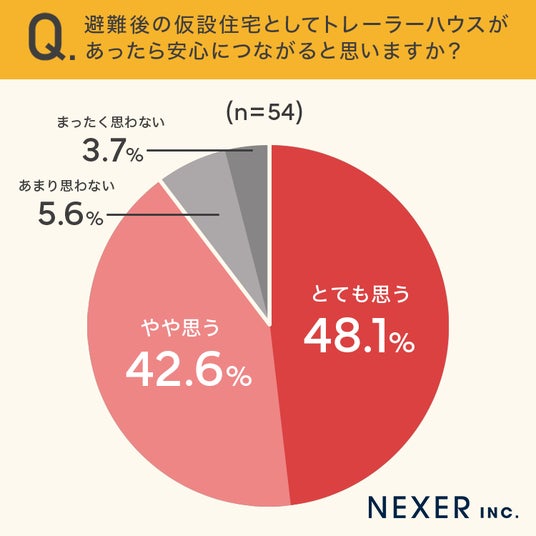 実際に避難した際に、避難所の面積が足りないと感じた経験から、トレーラーハウスがあると安心できると感じる方もいるようです。