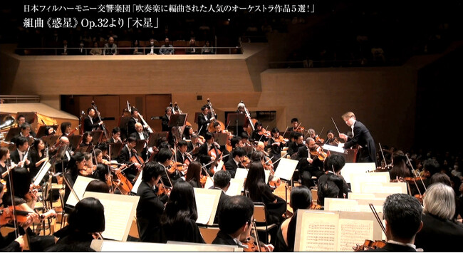 このたび配信を開始する映像には、日本フィルハーモニー交響楽団と名指揮者たちによる演奏を収録。ホルストの『組曲《惑星》より「木星」』や、ラヴェルの『《ダフニスとクロエ》第2組曲』など、吹奏楽の経験者はもちろん、誰もが一度は耳にしたことがある名曲・全5曲を、約1時間に渡る映像でたっぷりとお届けします。