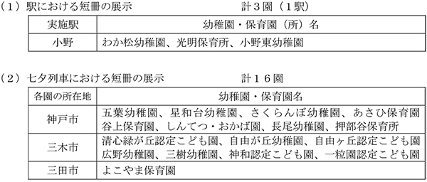 (3)内容 沿線の幼稚園や保育園(所)にご協力いただき、願い事やメッセージが書かれた短冊を貼付したポスター等の展示を行います。