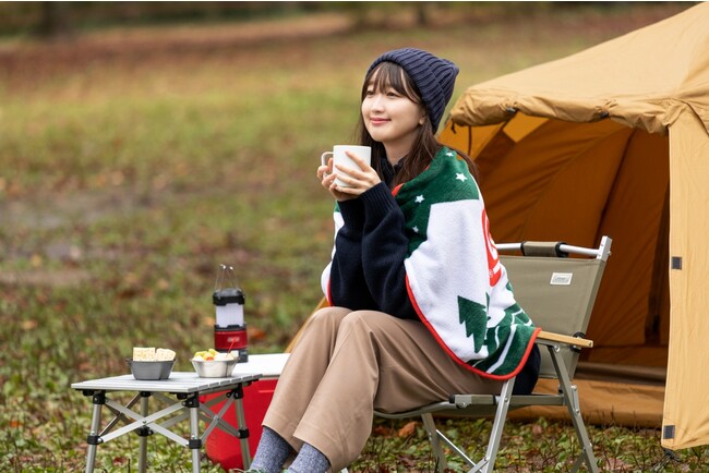 森の中でのキャンプシーンが描かれた、完全オリジナルブランケット! タテ約60cm×ヨコ約100cmと超BIGサイズ。