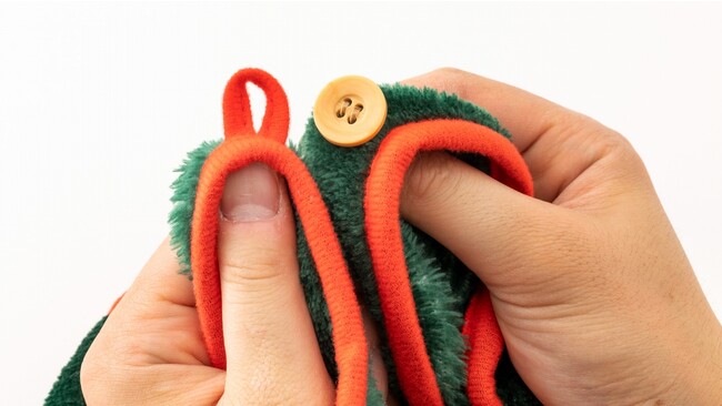 ボタンをかければ、肩掛けとして使ってもずれ落ちにくい。