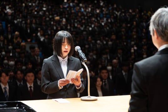 在校生代表の新妻悠華さん(国際医療看護福祉大学校臨床工学技士科2年)による歓迎の言葉を受け、新入生を代表して木村もえさん(国際アート&デザイン大学校グラフィックデザイン科3年制)が登壇。「努力を重ね、仲間と切磋琢磨しながら精進してまいります 」と、専門スキル習得への強い決意を力強く宣誓しました。
