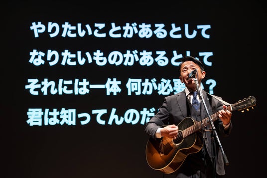 著書「人生で後悔しないために読んでおきたい88の言葉」を出版するほど、 「言葉」を大切にする彼ならではの熱いメッセージに、会場は感動と興奮に包まれました。自身の経験を交えたトークと、背中を後押しするライブパフォーマンスを通じ、新入生たちは「夢を言葉にする力」と「一歩踏み出す勇気」をしっかりと受け取っていました。
