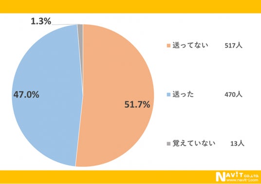 年賀状を送ったかどうかのアンケートの結果では「送った」という人が47.0%で半分を切るという結果になりました。年々年賀状を送る人が減ってきていると耳にしますが、半数以下というのは、ある意味ショッキングな数字だと思います。