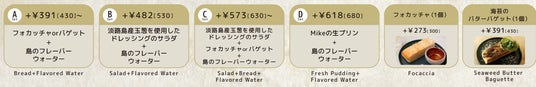 淡路島産玉ねぎのドレッシングで味わうサラダ、フォカッチャ、淡路島・北坂たまごの生プリン、フレーバーウォーターのドリンクバーなど、MIKE(ミケ)のパスタには、お好みのサイドメニューをセットするのがおすすめ。