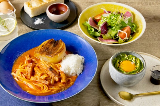 トマトにたまご、玉ねぎなど淡路島うまれの彩り豊かな食材をもちもち生パスタとともに。