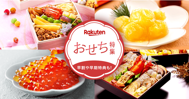 「楽天市場」では、約1.4万点(注1)のおせちを取り扱っています。コロナ禍を経て、ECがおせちの購入チャネルとして定着していることから、2020年から2023年の正月のおせち商戦において、「楽天市場」のおせちの流通額は約1.9倍(注2)に拡大しています。また、昨年はおせちの流通額の約1割が9月までの購入(注3)と、一定の早期購入需要があることから、今年は8月18日(金)より早期需要に対応した特集ページ「楽天市場 おせち特集2024 早割など早期特典も」を開設し、早期予約に対応した商品や早期予約特典付きの商品を紹介しています(注4)。