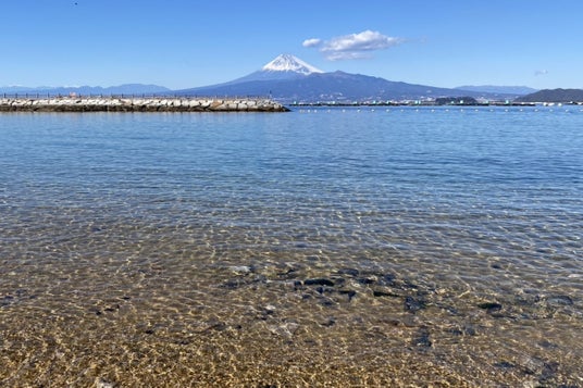 らららサンビーチ(平沢) 特に冬場は透明度の高い海越しの富士山を望むことができる