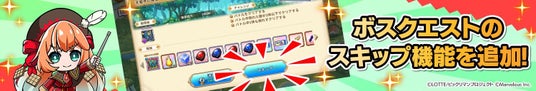 メインクエスト「聖魔大戦編」および「次代冒険編」のハードクエストに登場するボスクエストに、クエストのスキップ機能を追加いたしました。